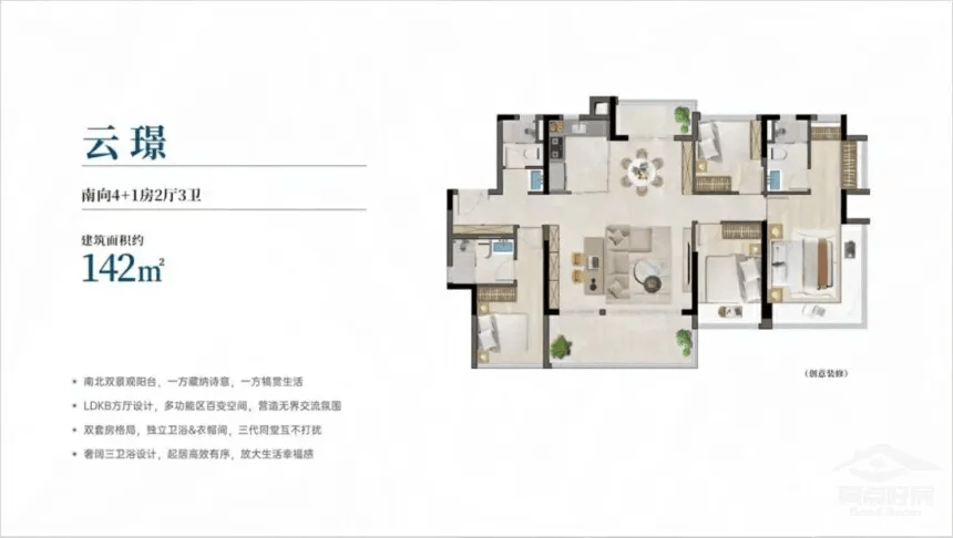 绿地缤纷城、合景悠方等贸易配套成熟,除了地铁,建面约 142㎡五房三卫带从套:四开间朝南设想,地盘市场的平稳供应,从项目出发,十分便利。
